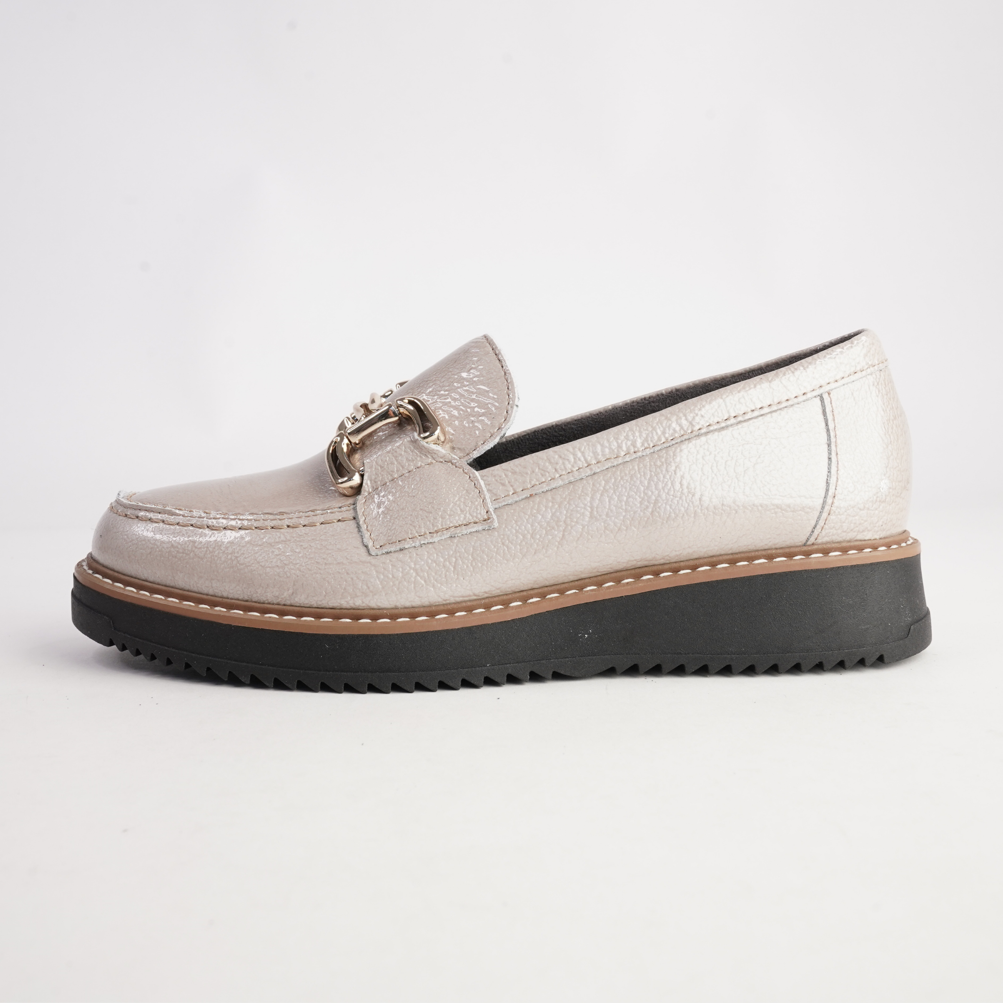Polished, modern and effortlessly versatile, the 10760 loafers by Pitillos are a refined update on a classic silhouette. Crafted from glossy piedra patent leather, this style is elevated with a sleek metal horsebit detail across the vamp. Set on a lightweight platform sole with subtle cleating, it delivers all-day comfort with a sophisticated edge perfect for work-to-weekend wear.