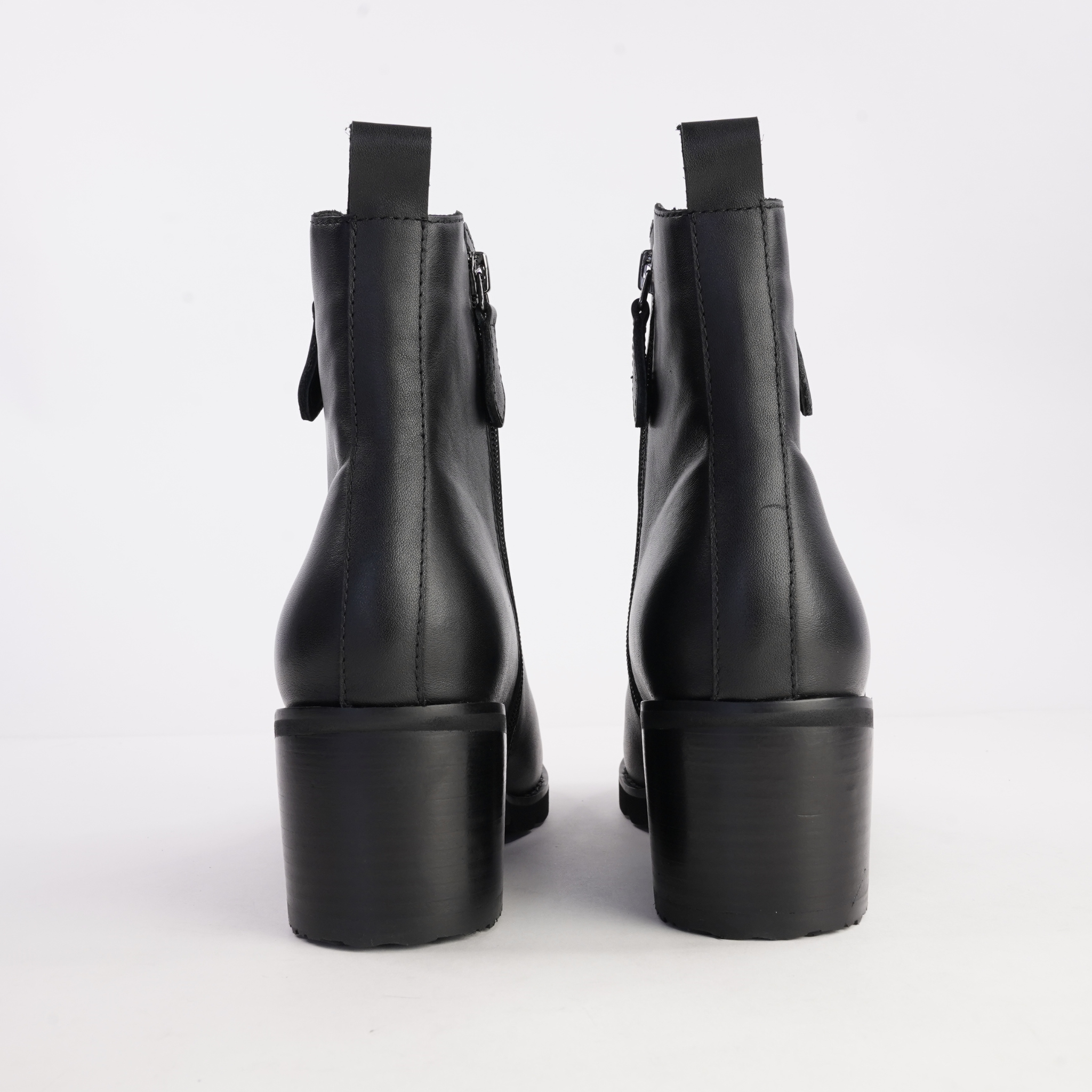 Sleek, structured and effortlessly wearable, the Anakie Ankle Boots by CBD are a modern essential for everyday dressing. Crafted from smooth black leather, this refined silhouette features clean lines, a softly squared toe and a sturdy block heel for confident wear. Dual side zips allow for easy on and off, while the minimalist design makes Anakie a versatile staple from workdays to weekends.