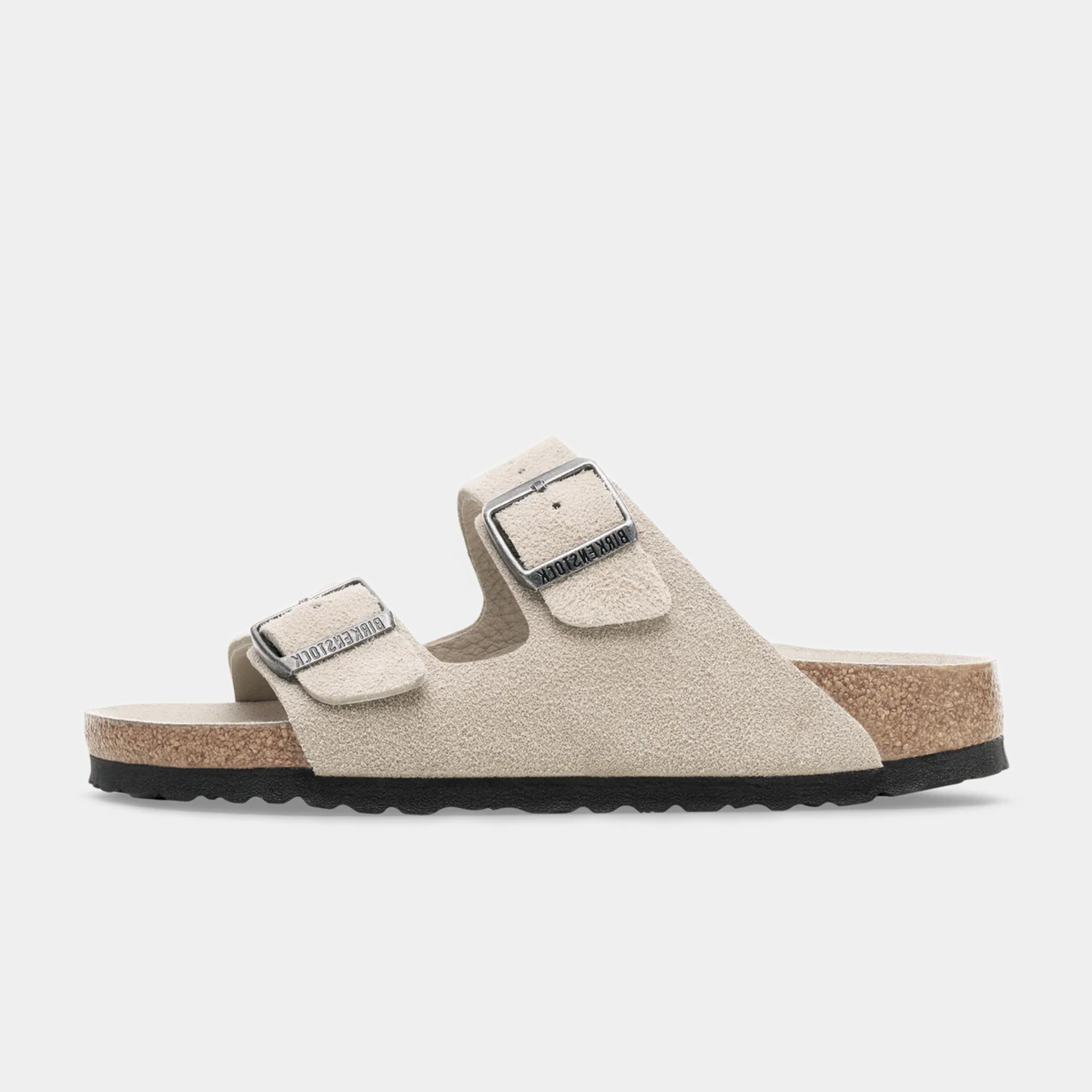 A timeless essential with elevated comfort, the Arizona SFB in Oyster pairs classic Birkenstock style with a soft, tonal finish. Crafted from premium suede leather, this two-strap sandal features a Soft Footbed (SFB) with an integrated foam layer for extra cushioning and immediate comfort. Adjustable metal buckles allow a customised fit, while the contoured cork footbed supports natural alignment for all-day wear.