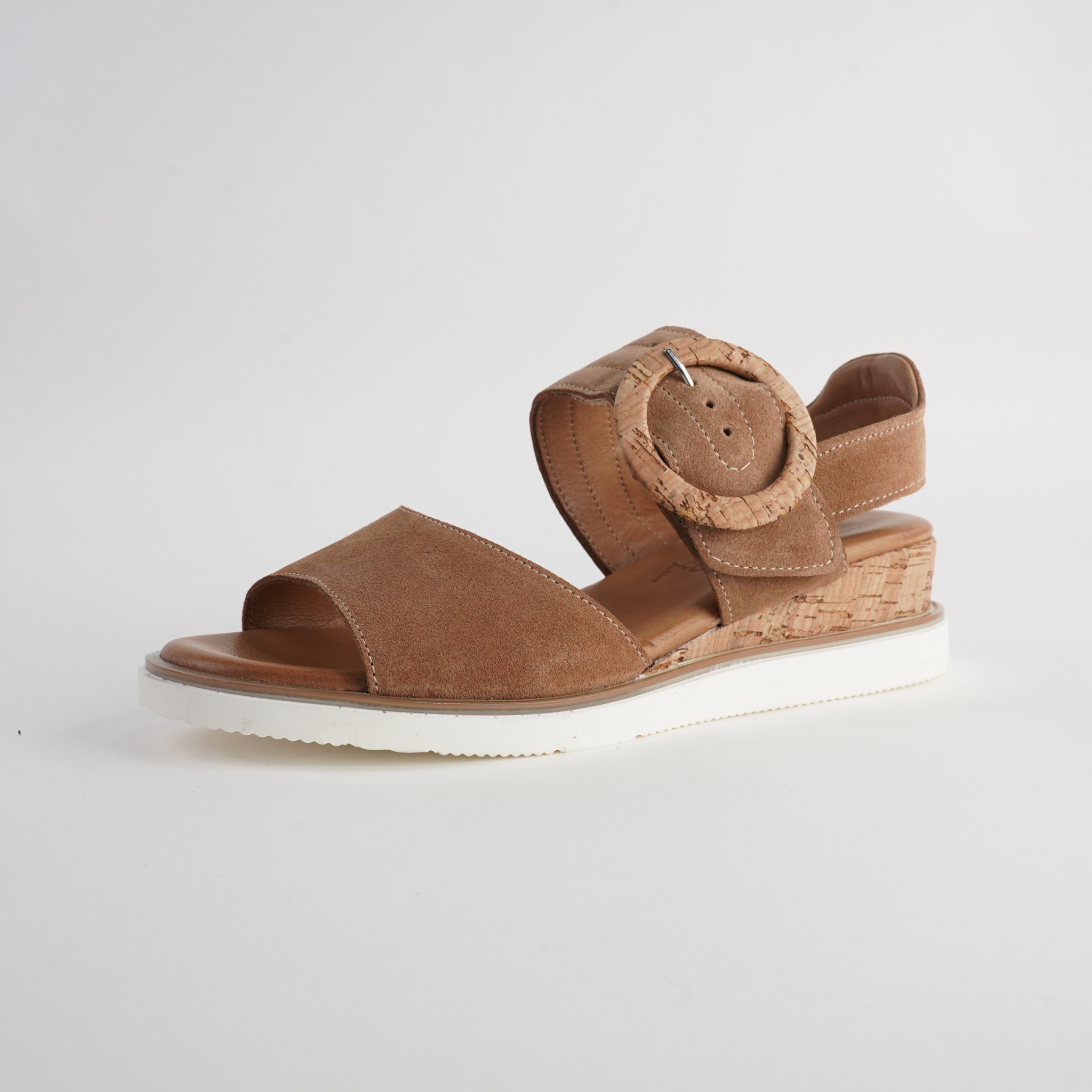 Step into summer style with the Aspen Tan Leather Sandals by Cabello. Crafted from premium soft leather, these sandals feature a wide strap across the toe and an adjustable ankle strap with a statement buckle for a secure fit. The cork-textured wedge provides subtle lift while keeping you comfortable, and the cushioned footbed ensures ease for all-day wear. Perfect for pairing with casual or dressy outfits alike.