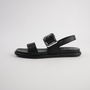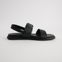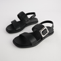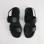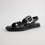 The Bay Black Leather Sandals by Wonders bring effortless sophistication to your everyday wardrobe. Crafted in Spain from supple black leather, this minimalist design features a bold oversized buckle detail and a cushioned footbed for superior comfort. The sleek, low-profile sole and clean lines make it a versatile staple for both casual and elevated looks.