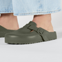 The iconic Birkenstock Boston clog reimagined in lightweight EVA. Comfortable, water-friendly, and shock-absorbent, these versatile flats are perfect for casual wear, beach days, or post-workout recovery. Designed with the signature contoured footbed, they provide all-day support in a sleek, easy-to-wear style.