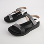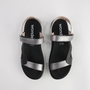The Cami Black Combo Leather Sandals by Wonders blend modern minimalism with everyday comfort. Crafted from premium textured leather in a sleek black and metallic combo, these sandals feature a cushioned footbed and a lightweight WondersFly™ platform sole for effortless all-day wear. The adjustable ankle strap ensures a perfect fit, while the contemporary design adds understated sophistication to any look.