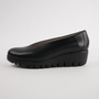 The Caroline Black/ Black Leather Wedges by Wonders bring a refined edge to everyday dressing. Crafted from premium black leather, these wedges feature a contemporary almond toe and a signature WondersFly™ platform sole for ultra-lightweight comfort. Perfect for work or weekend wear, the sleek design pairs effortlessly with tailored pants or flowing skirts.