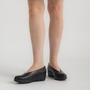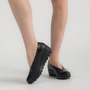 The Caroline Black/ Black Leather Wedges by Wonders bring a refined edge to everyday dressing. Crafted from premium black leather, these wedges feature a contemporary almond toe and a signature WondersFly™ platform sole for ultra-lightweight comfort. Perfect for work or weekend wear, the sleek design pairs effortlessly with tailored pants or flowing skirts.