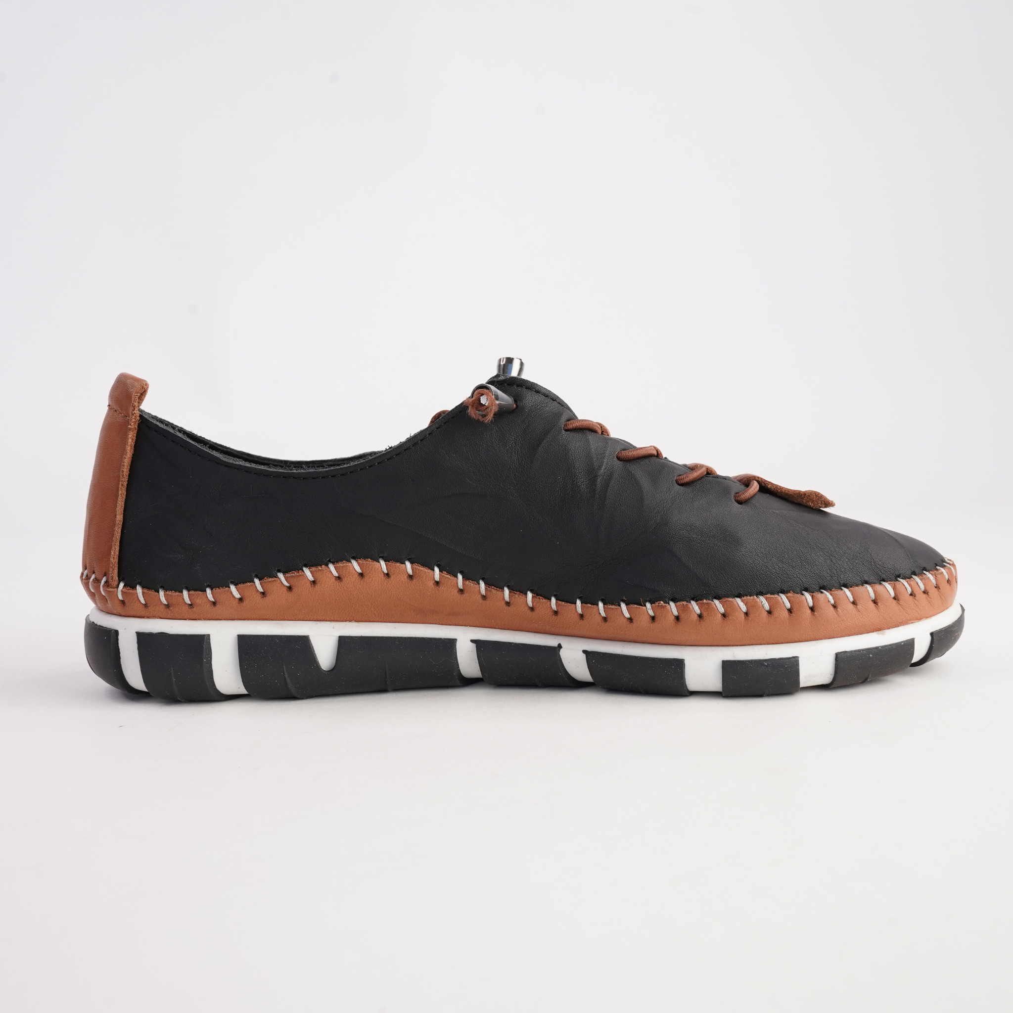 Relaxed, lightweight and effortlessly comfortable, the Chino sneakers by Cabello are your go-to for everyday wear. Crafted from soft black leather with contrast stitching and subtle colour detailing, this casual lace-up style delivers both character and comfort. The flexible sole and cushioned finish make them perfect for long days on your feet.
