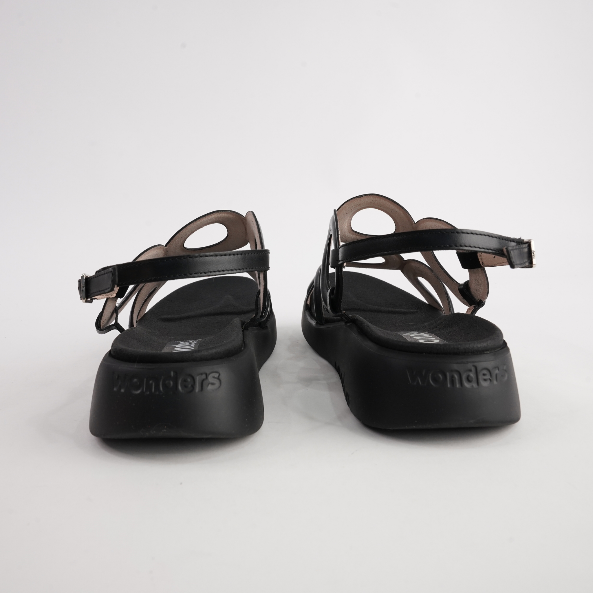 The Ciara Black Leather Sandals by Wonders are where bold design meets everyday comfort. Crafted in Spain from soft black leather, these sculptural sandals feature statement circular straps for a modern, artistic touch. The cushioned leather insole and ultra-light WondersFly™ sole provide lasting comfort, making them the perfect choice for both casual and dressy occasions.