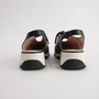 The Claudia Black Leather Wedges by Wonders offer a perfect blend of contemporary design and comfort. Crafted in Spain from smooth black leather, these stylish wedges feature a chic knotted front detail and an open heel for an effortlessly modern look. Set on a lightweight, contrasting WondersFly™ sole with a wavy edge, they deliver all-day comfort and a unique touch of sophistication.