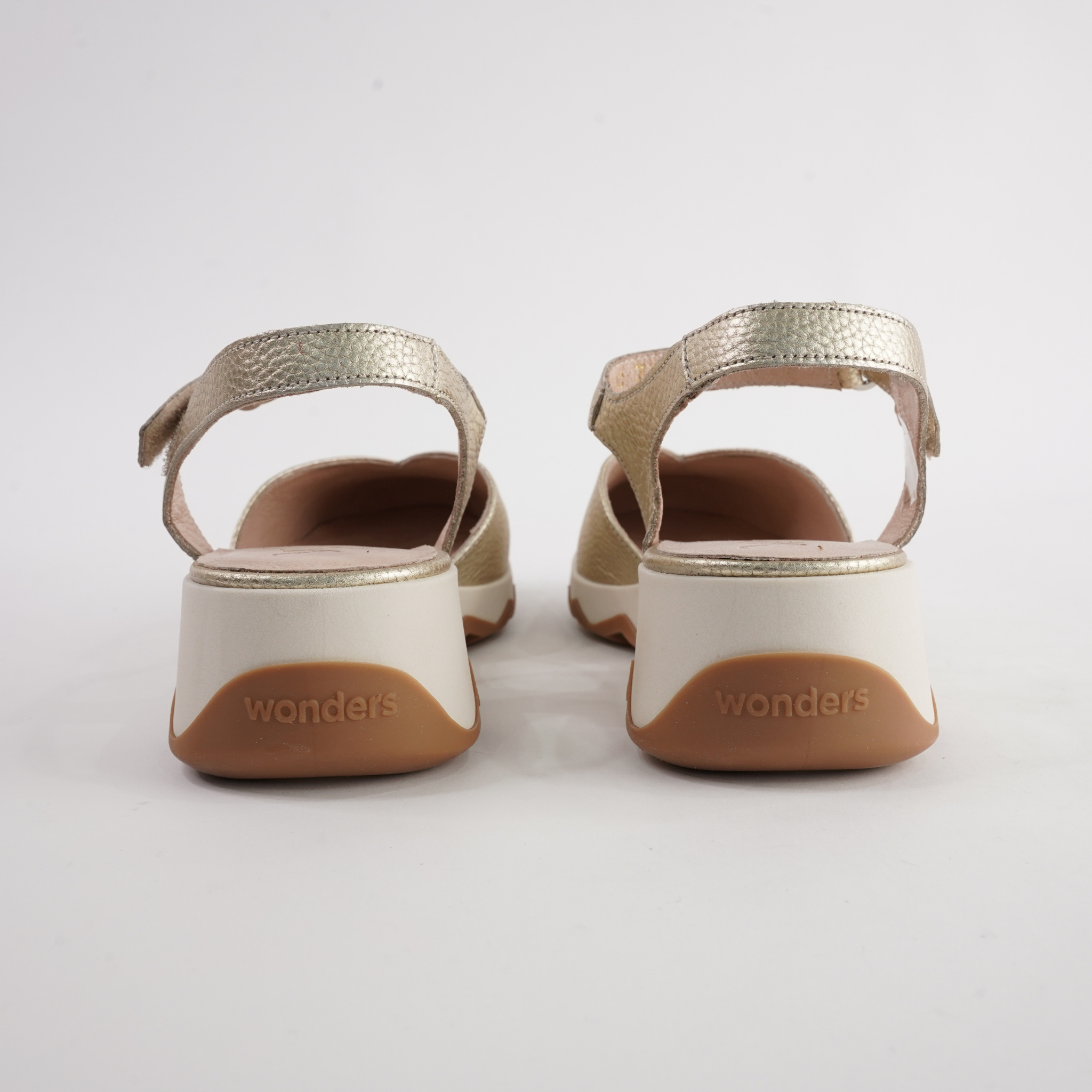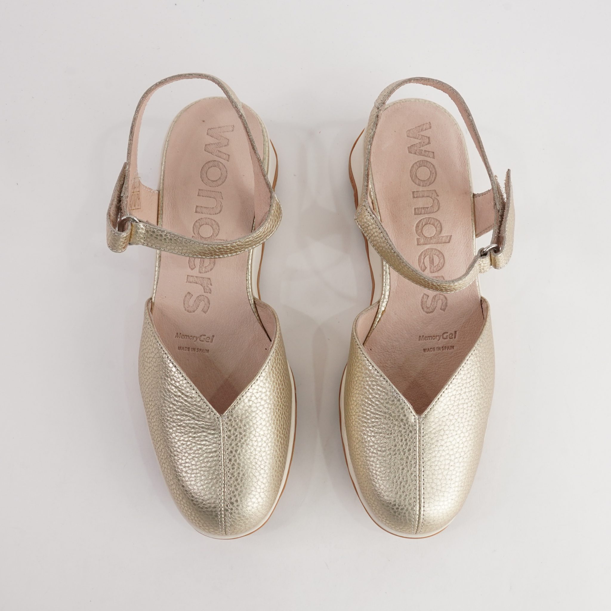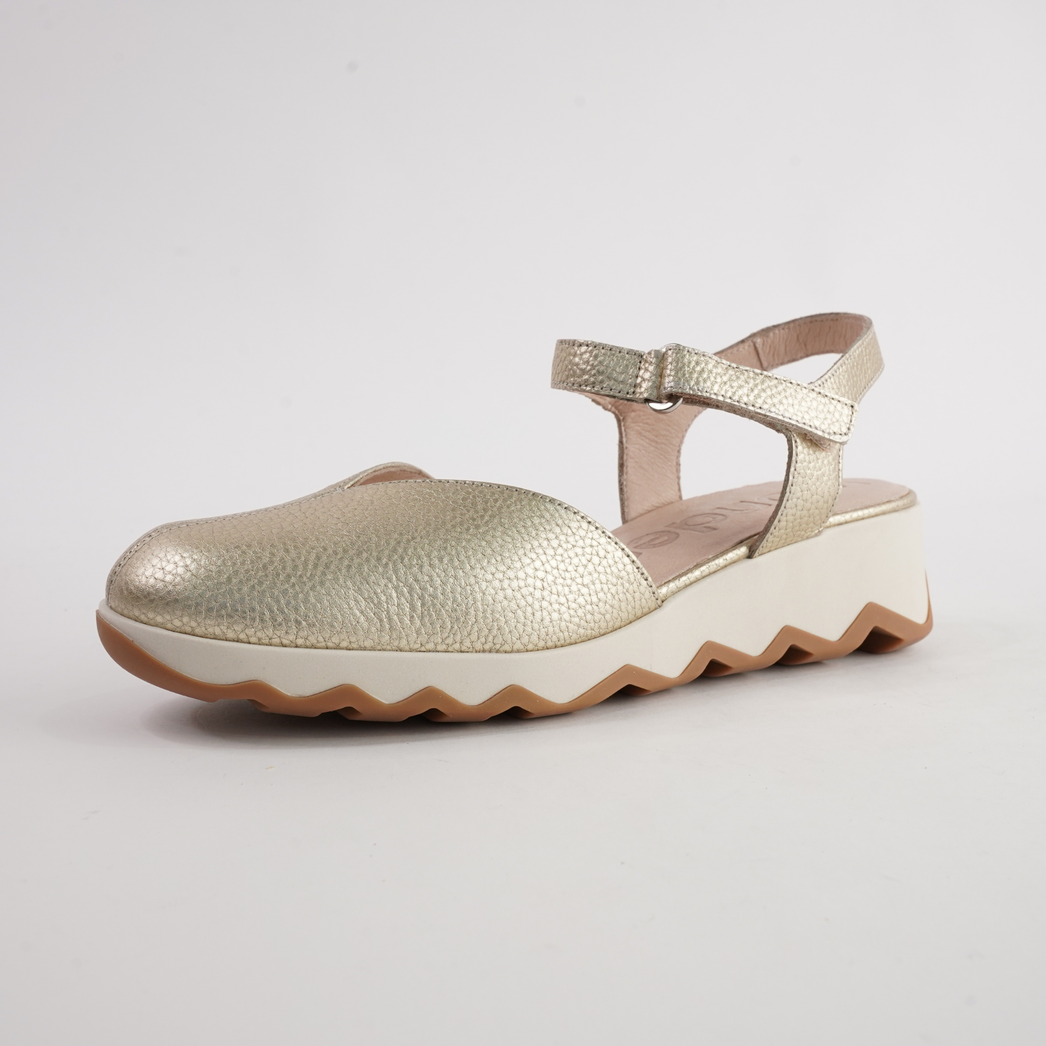 The Cobi Platino Leather Wedges by Wonders combine modern minimalism with everyday ease. Expertly crafted in Spain from soft pebbled leather, this closed-toe wedge features a secure ankle strap and the brand’s signature lightweight WondersFly™ sole. With its contrasting black-and-white platform and cushioned insole, Cobi offers stylish height and all-day comfort in one sleek design.