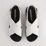 The Colleen White/Black Sole Leather Sandals by Wonders bring together effortless style and everyday comfort. Crafted in Spain from supple pebbled leather, these sandals feature a sleek crossover design and an adjustable ankle strap for a secure fit. The cushioned leather footbed and ultra-light WondersFly™ sole ensure all-day support and wearability — perfect for versatile summer styling.