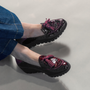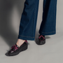 The Daphne loafers by Wonders combine texture and tone with a patent croc finish, suede accents, and eye-catching tassels. A subtle platform gives a boost to both height and comfort.