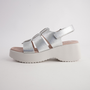 Add a modern edge to your summer wardrobe with the Dove Silver/Off White Leather Sandals by Wonders. Featuring a bold platform sole and metallic silver leather straps, these sandals perfectly combine contemporary style with effortless comfort. The soft leather upper and cushioned footbed provide a luxurious feel, while the adjustable strap ensures a secure, personalised fit. A lightweight off-white sole adds height without compromising on comfort — ideal for all-day wear.