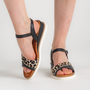 Bring a playful twist to your summer style with the Eclipse Black Leather Sandals by Cabello. Crafted from supple leather with a statement leopard-print strap, these sandals combine comfort and flair. The cushioned footbed and lightweight sole offer all-day support, while the adjustable ankle strap ensures a secure and personalised fit. Perfect for pairing with casual dresses, linen pants or denim for an effortless weekend look.