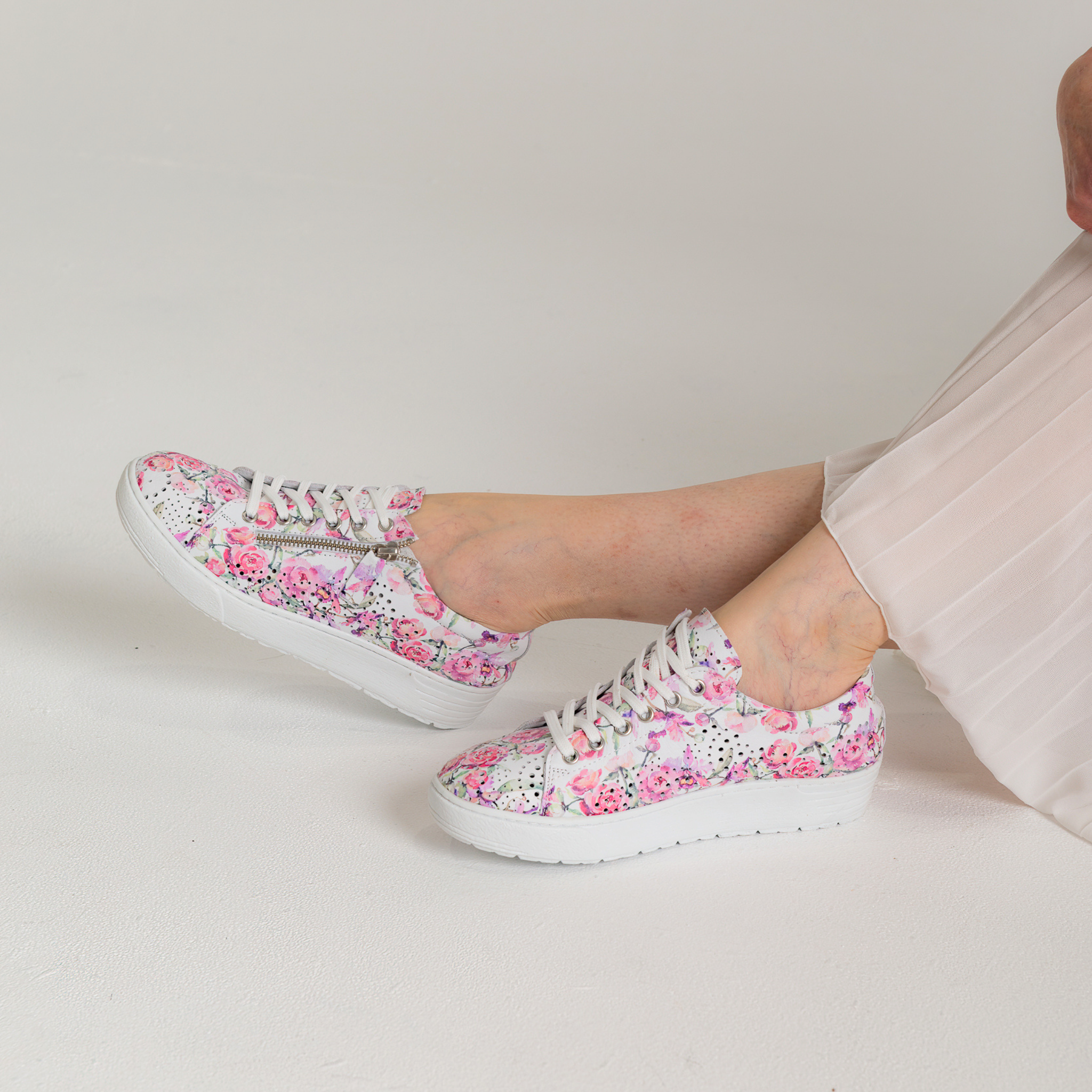 Add a touch of charm to your everyday style with the Eg11p Floral sneakers. Made from soft leather with a vibrant floral print, these sneakers feature side zips for easy wear and a cushioned sole for all-day comfort. Perfect for casual strolls or relaxed weekends.