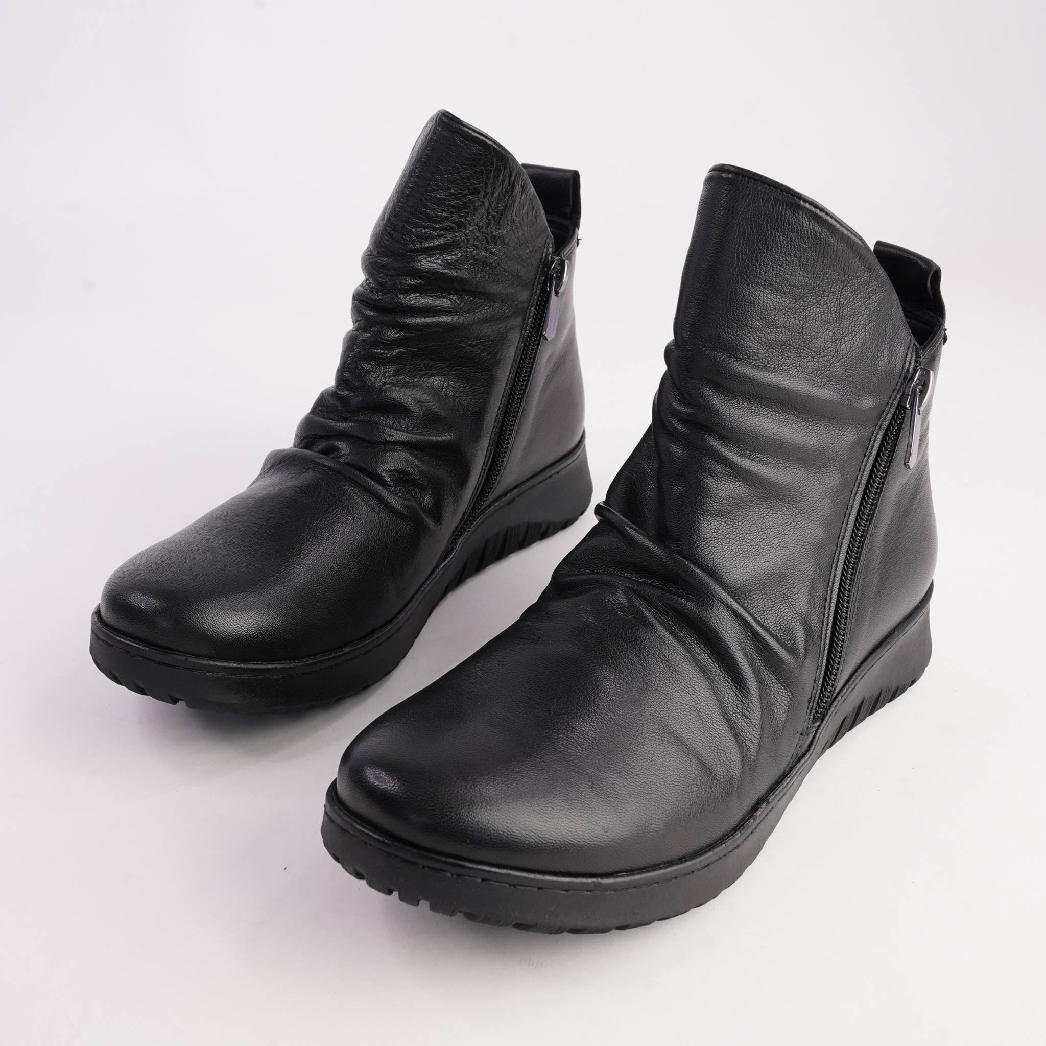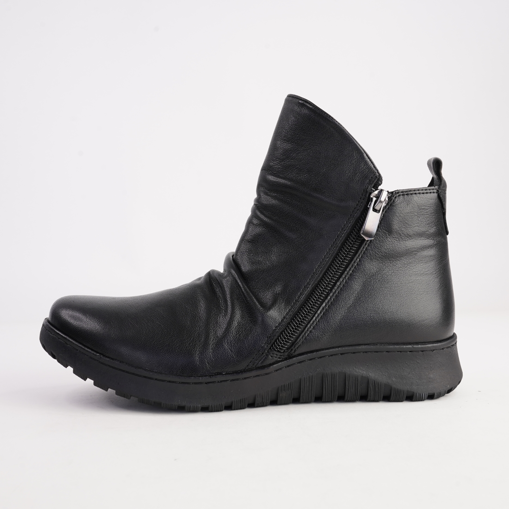The Express ankle boots by Cabello offer effortless everyday comfort with a relaxed, modern look. Crafted from soft leather, the gently ruched upper adds texture and style, while the side zip allows for easy on-and-off wear. A lightweight, flexible sole provides cushioning and support for all-day comfort.