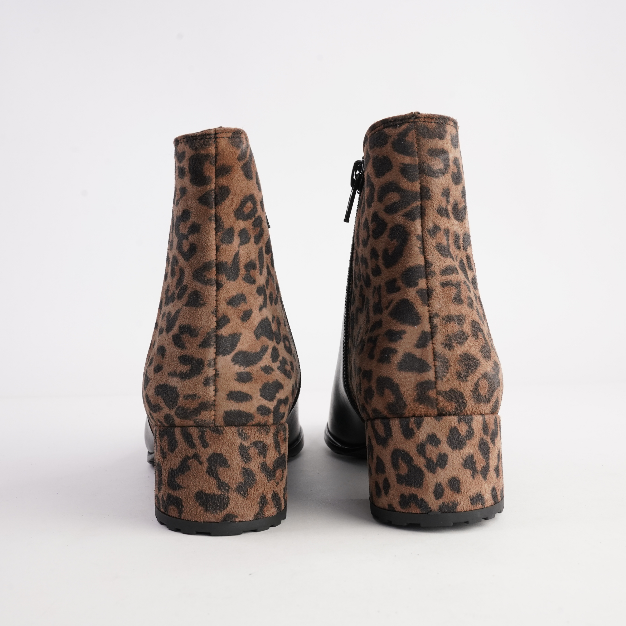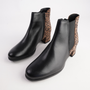 Fendrina-710 Black Leather Leopard Ankle Boots