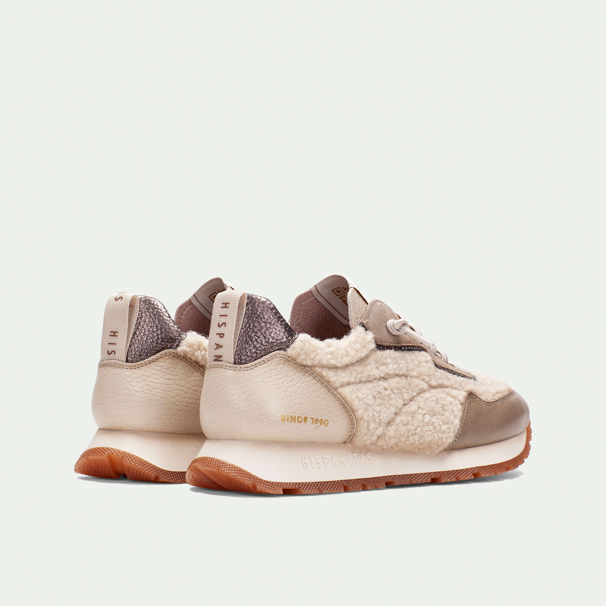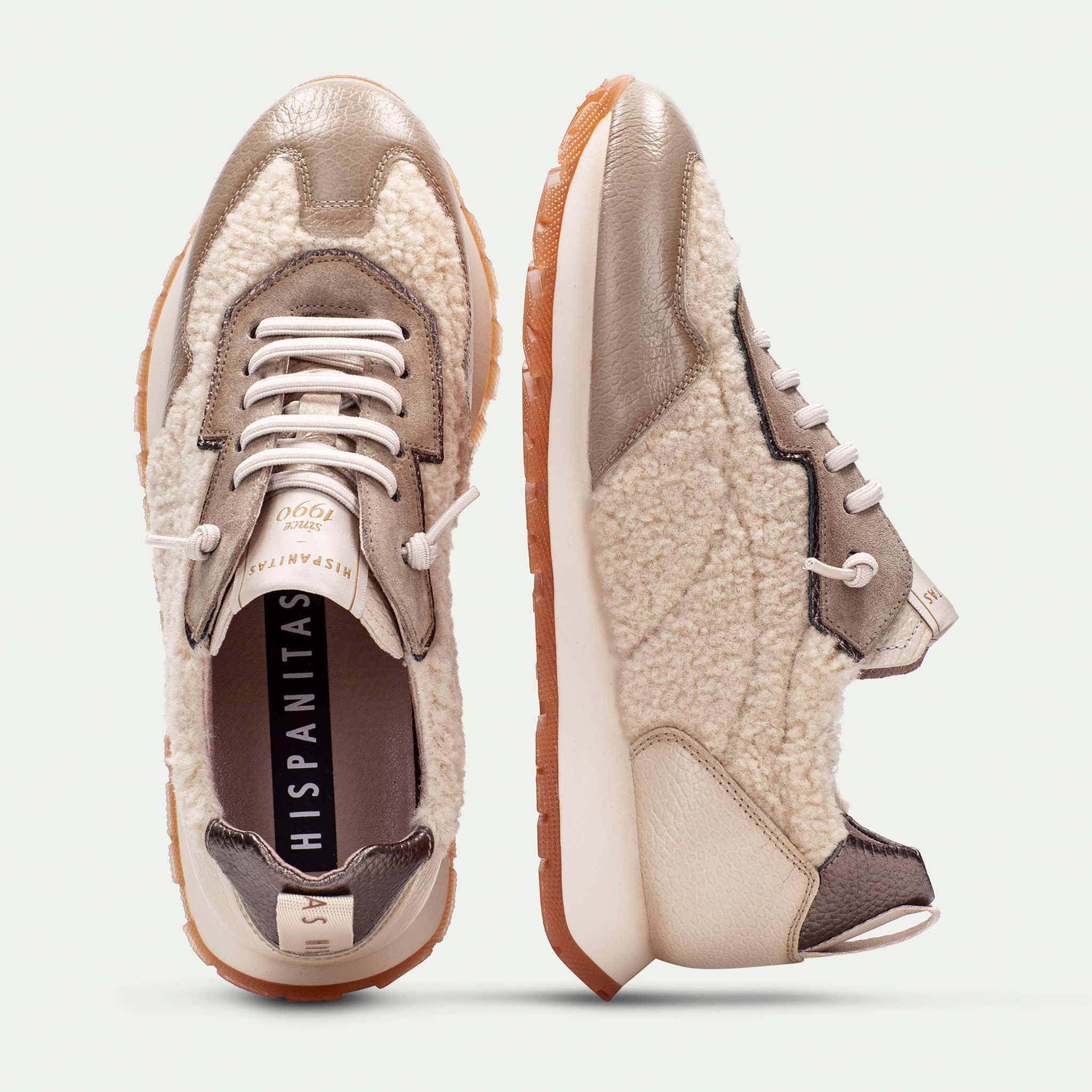 The HI254209 Cream Combo sneakers bring together cosy texture and everyday sophistication. Crafted from smooth leather with soft, non-animal-based shearling detailing, this sporty silhouette delivers standout style without sacrificing comfort. Designed for all-day wear, the cushioned sole and supportive insole make them a refined choice for casual dressing with a luxe edge.