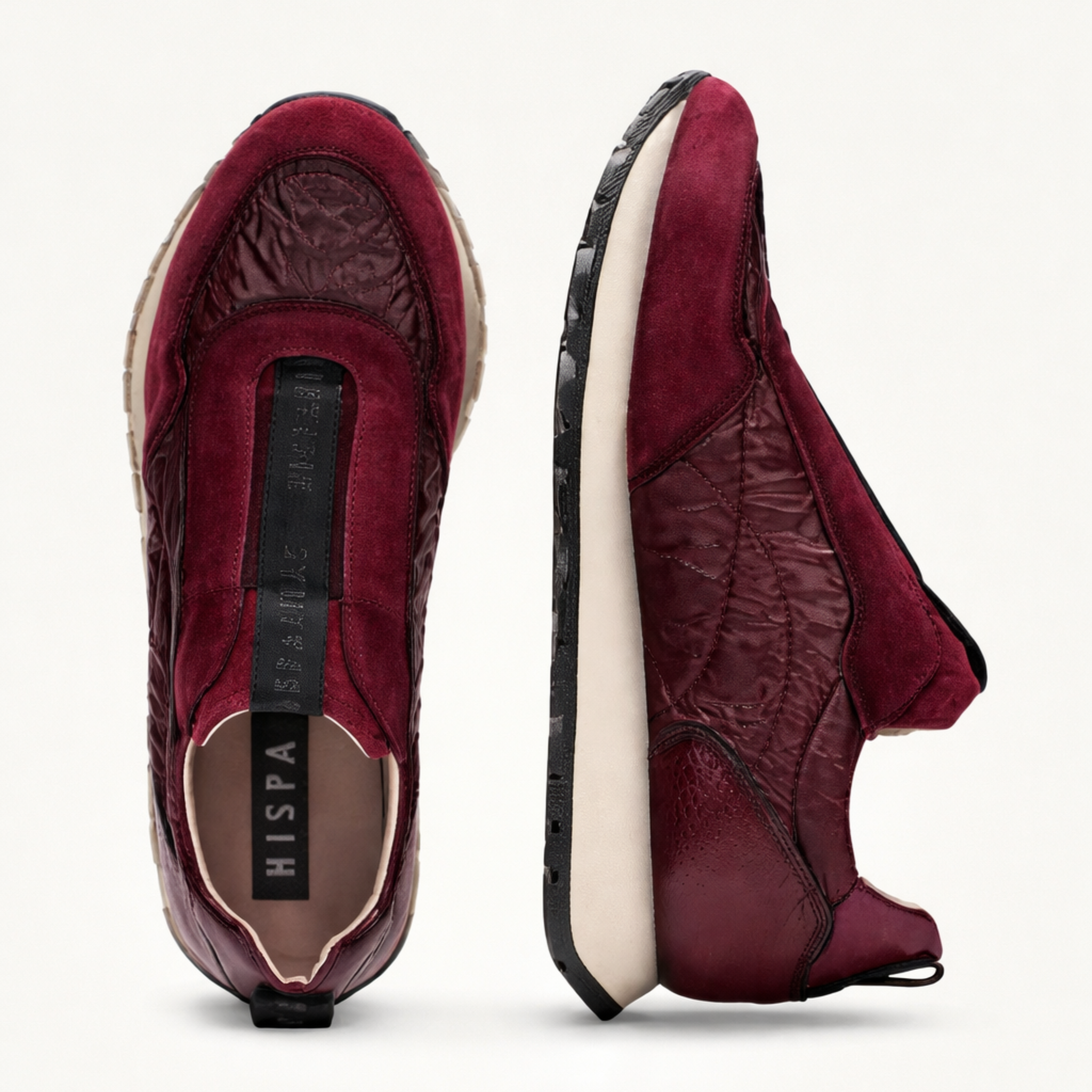 Designed for movement and comfort, the HI254222 Wine Sneakers combine soft leather with lightweight nylon for a breathable, flexible fit. An elasticated instep makes them easy to slip on and off, while the cushioned sole and anatomical insole provide lasting support, perfect for busy days on the go.