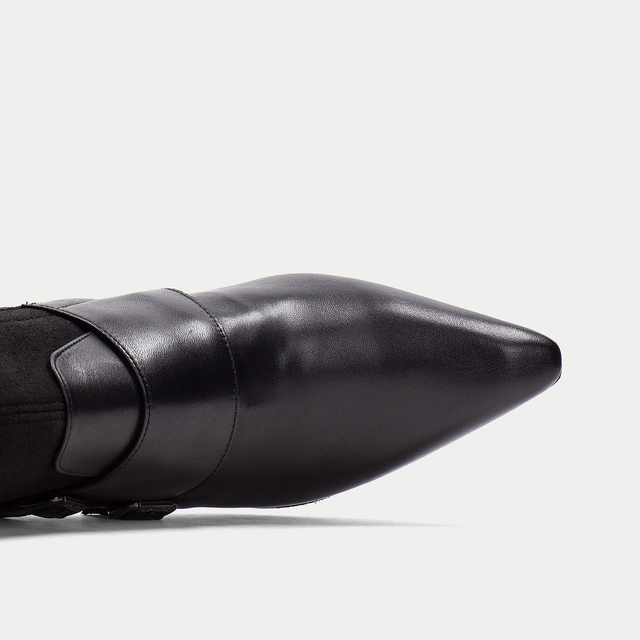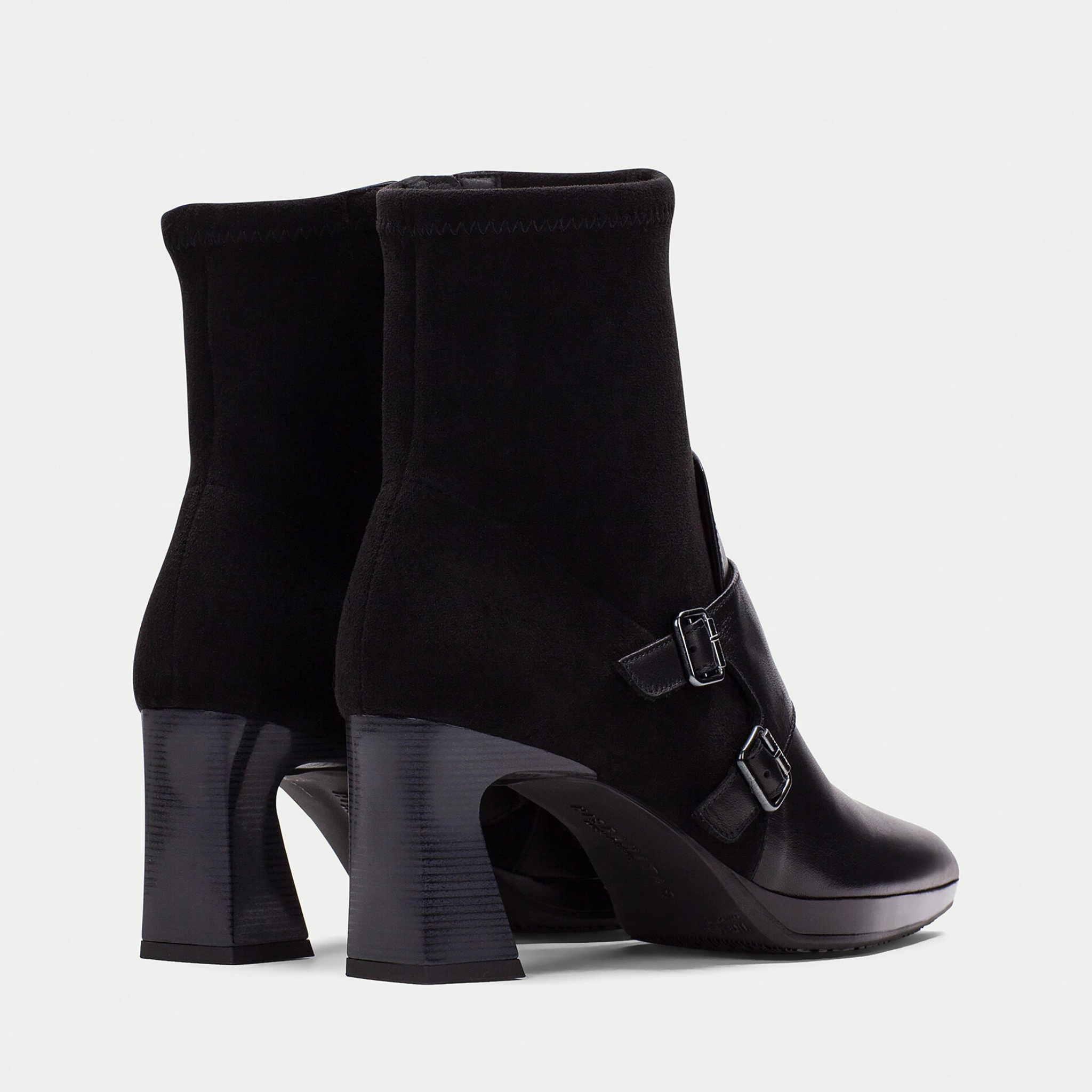 A refined monk strap ankle boot with a sharp pointed toe, designed to elevate everyday dressing. Crafted from smooth leather combined with elastic for a comfortable, flexible fit, this style sits on a lightweight 1 cm platform and a 7 cm geometric heel finished with a wood-effect detail. Inside, a non-animal-based lining is 100% breathable and thermoregulating, while Hispanitas’ signature Triflow Technology delivers triple cushioning to absorb impact and provide exceptional comfort with every step.