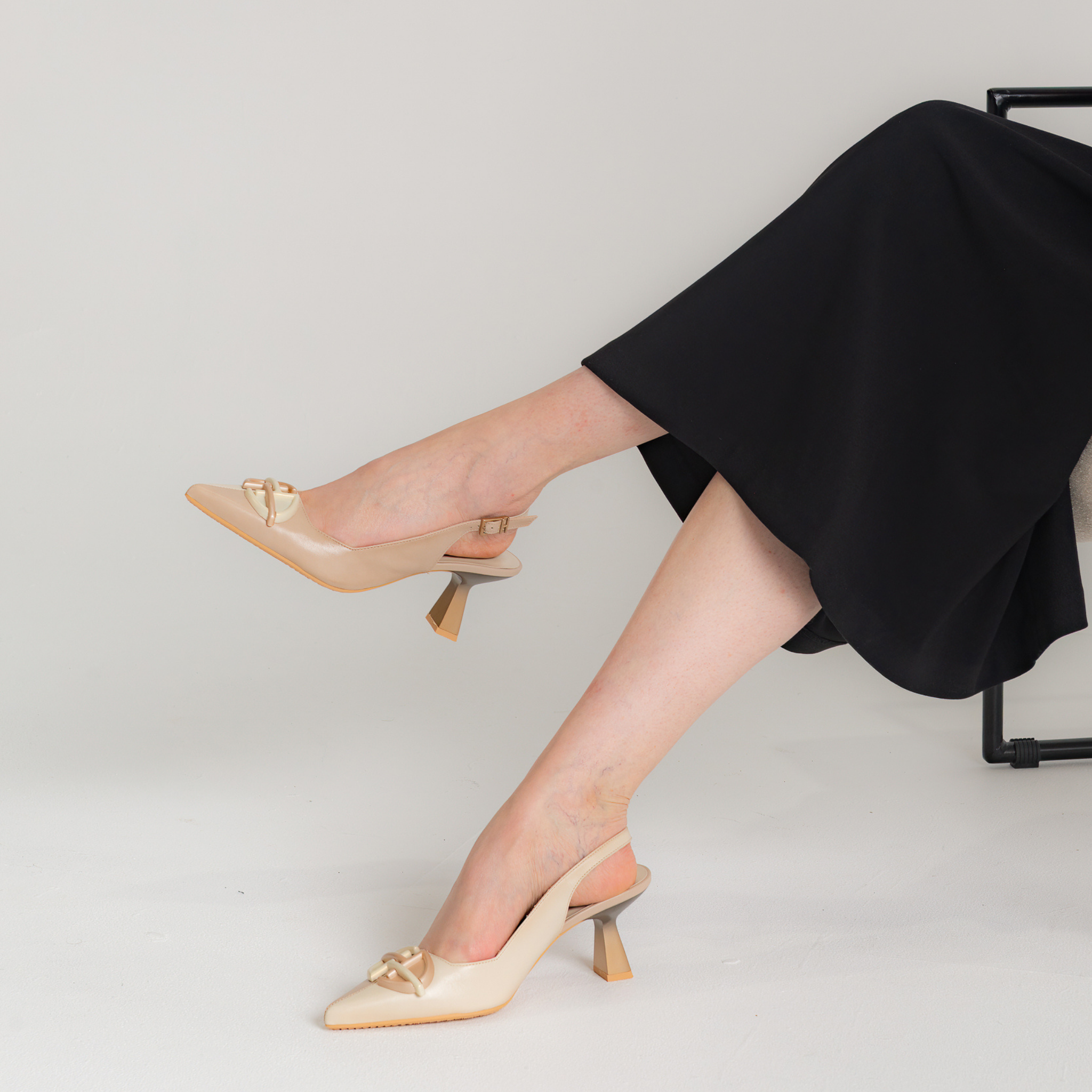 Step out in timeless elegance with the HV253867 slingback heels by Hispanitas. Crafted in taupe and latte leather, this refined design features a pointed toe and decorative appliqué for a chic finish. The 6.5 cm geometric heel offers stylish height without compromising comfort, while Triflow technology delivers cushioned support all day.
