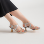Elevate your evening looks with the HV253879 heels by Hispanitas. Designed in a chic champagne and silver leather mix, these heels feature graceful crisscross straps and an adjustable buckle for a secure fit. A 6.5 cm geometric heel provides stylish height with lasting comfort, while Triflow technology ensures cushioned support step after step. Perfect for special occasions and elegant nights out.