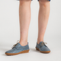 The Kroon Denim Leather Lace Up Flats by Cabello are the perfect blend of comfort and casual style. Handcrafted from premium soft leather with a perforated design, these lightweight lace-ups offer breathability and everyday ease. A flexible sole and cushioned insole provide lasting comfort, making them ideal for all-day wear.