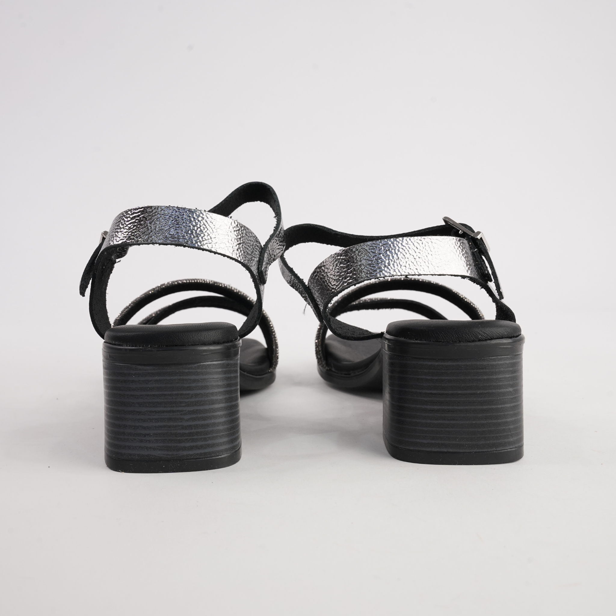 Step into understated glamour with the Olean Acero Leather Heels by Oh! My Sandals. Designed in Spain, these metallic heels feature delicate straps adorned with subtle sparkle, adding an elegant finish to any outfit. The soft leather upper, cushioned footbed and sturdy block heel ensure all-day comfort perfect for both special occasions and effortless evening style.