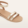 The Patterson sandals by Frankie4 combine timeless simplicity with all-day comfort. Crafted in soft gold leather, they feature minimalist double straps and an adjustable ankle buckle for a secure fit. A cushioned footbed and lightweight sole make them the perfect summer staple for both casual and dressy wear.