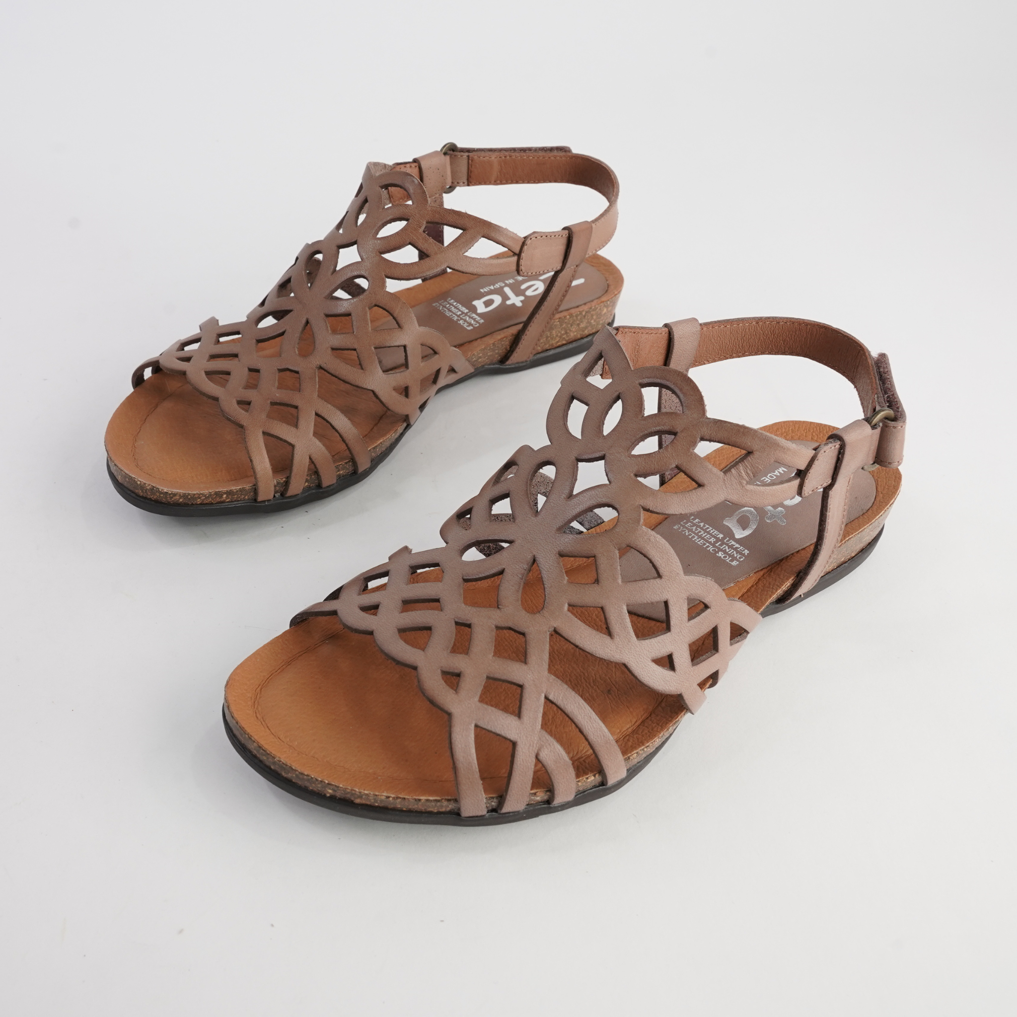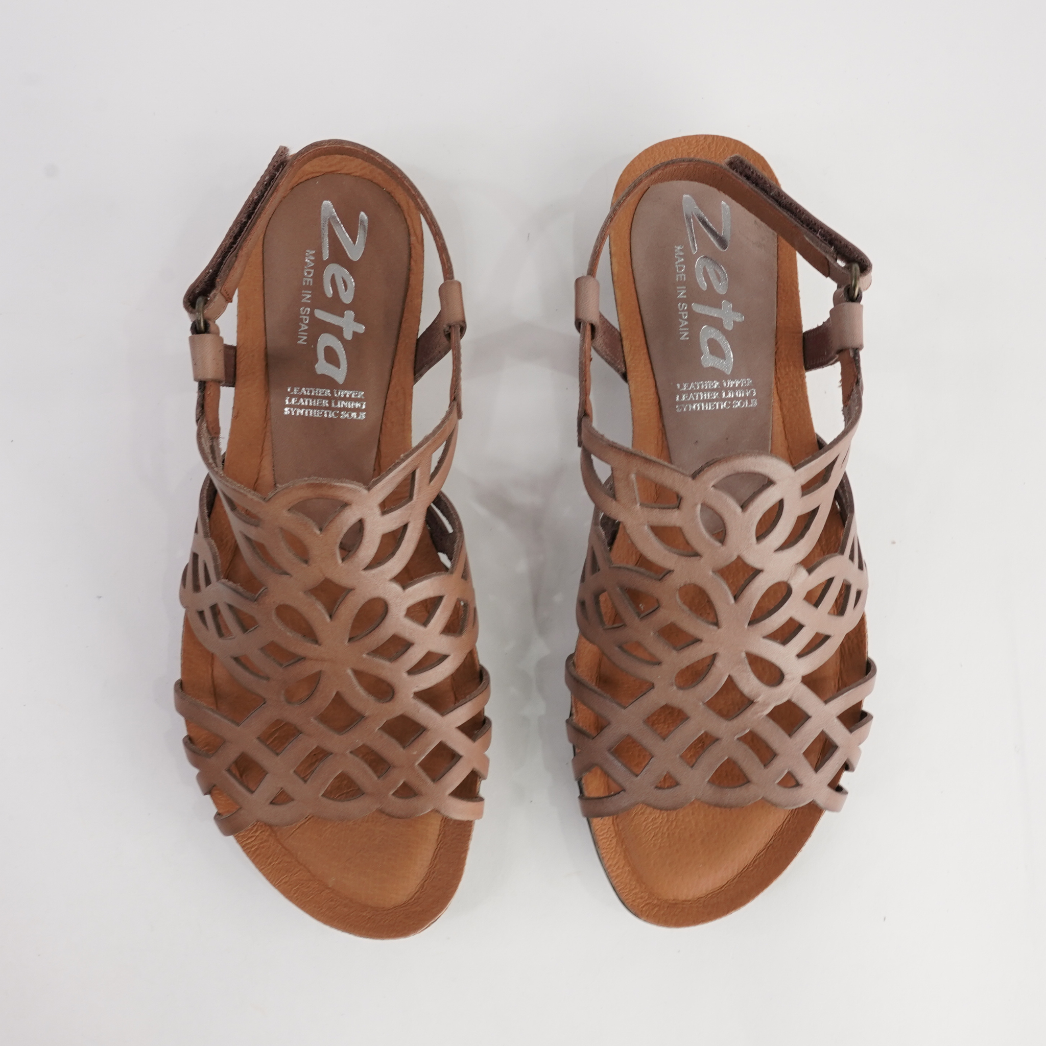 Bring effortless style and comfort to your warm-weather wardrobe with the Pollen Tan Leather Sandals by Zeta. Designed with a beautifully detailed laser-cut upper, this airy silhouette offers a soft, feminine look while keeping your feet cool all day. The cushioned footbed and low cork-style wedge provide gentle support, making Pollen ideal for everyday wear, travel, and long summer outings. Finished with an adjustable buckle strap, it delivers a secure and personalised fit with every step.