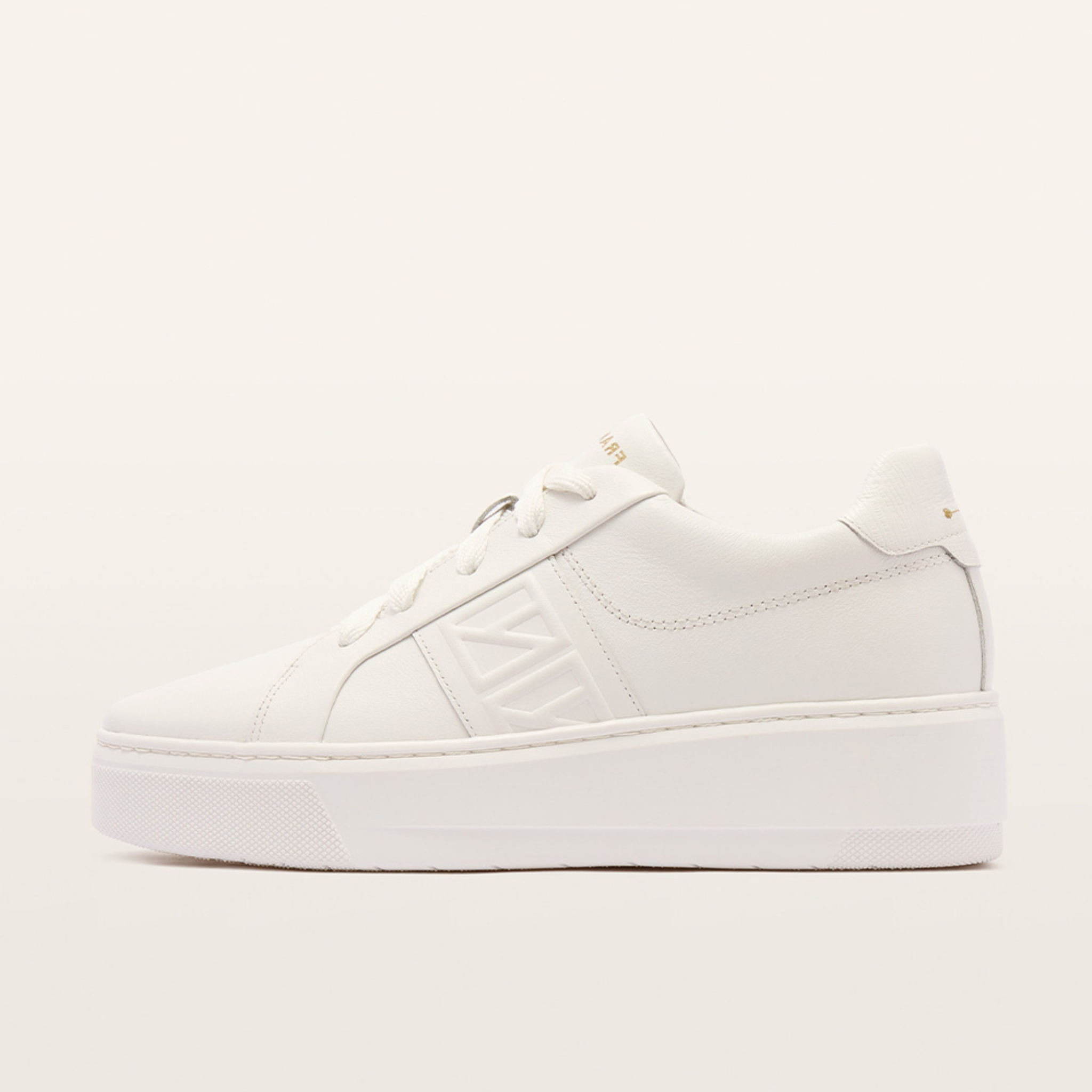 Clean, contemporary and endlessly versatile, the Riley II White Leather Sneakers by Frankie4 are your elevated everyday essential. Crafted from premium white leather with subtle embossed detailing, this platform sneaker blends minimalist style with podiatrist-designed comfort. Lightweight and supportive, Riley II is built to move with you, perfect for workdays, weekends and everything in between.