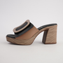 Make a bold statement with the Rouba Negro Leather Heels by Oh! My Sandals. Crafted in Spain from supple leather, these heels feature a modern two-tone design in black and tan, finished with an oversized metallic buckle accent for a touch of sophistication. The cushioned leather footbed and sculpted wood-effect platform heel ensure style meets comfort, making them the perfect choice for elevating both casual and evening looks.