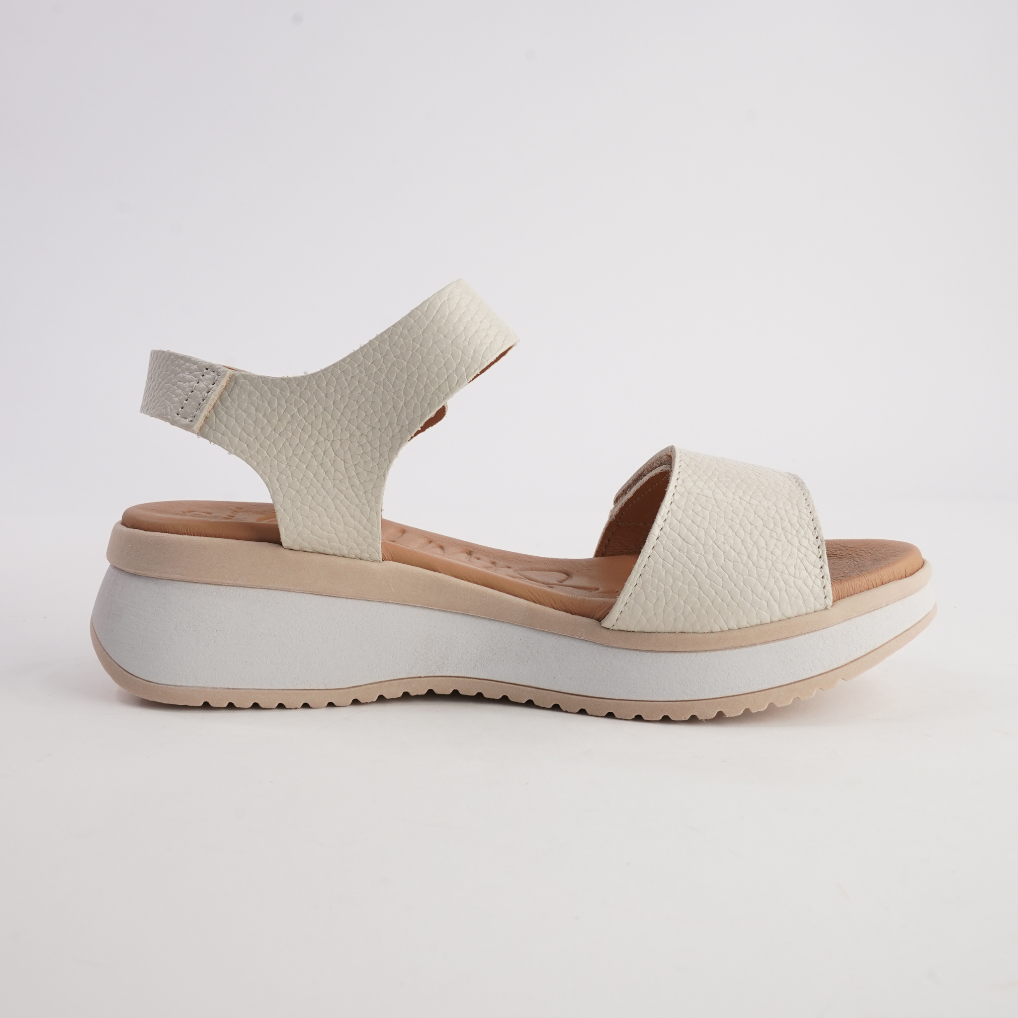 Keep your look effortlessly modern with the Sabo Hielo Leather Sandals by Oh! My Sandals. Crafted in Spain from supple ice-toned leather, these sandals feature a minimalist silhouette with wide straps and easy velcro closures for a custom fit. The cushioned footbed and lightweight platform sole offer superior comfort and support making them perfect for all-day wear and everyday style.