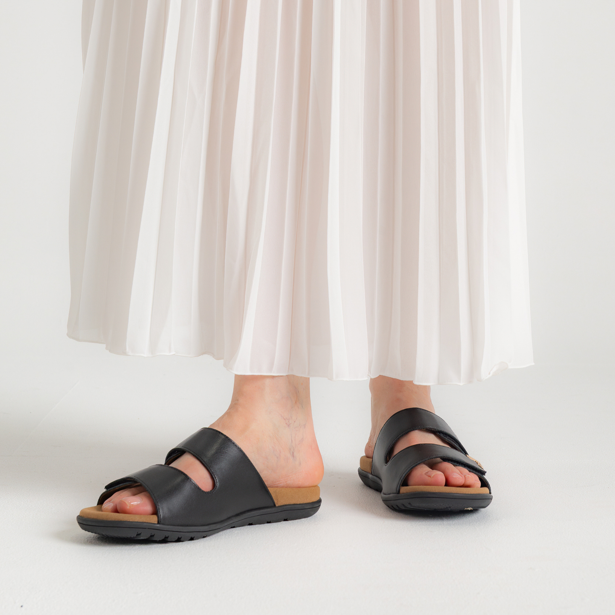 The Tribe Black Leather Slides by Christiano Bellaria combine modern minimalism with everyday comfort. Crafted from smooth genuine leather, this easy slip-on design features dual adjustable straps with subtle metallic accents for a touch of sophistication. The cushioned footbed with built-in arch support provides exceptional all-day comfort, while the flexible sole ensures stability and ease of movement. Perfect for laid-back weekends, travel, or everyday wear, Tribe offers a timeless style with practical comfort.