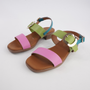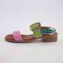 Add a touch of modern shine to your look with the Trilly Bright Multi Multi Leather Sandals by Oh! My Sandals. Expertly crafted in Spain, these sandals combine pink, green, and blue tones in soft pebbled leather for a chic yet versatile finish. The low block heel and cushioned footbed ensure day-long comfort, while the statement gold buckle detail elevates your outfit from casual to effortlessly refined.