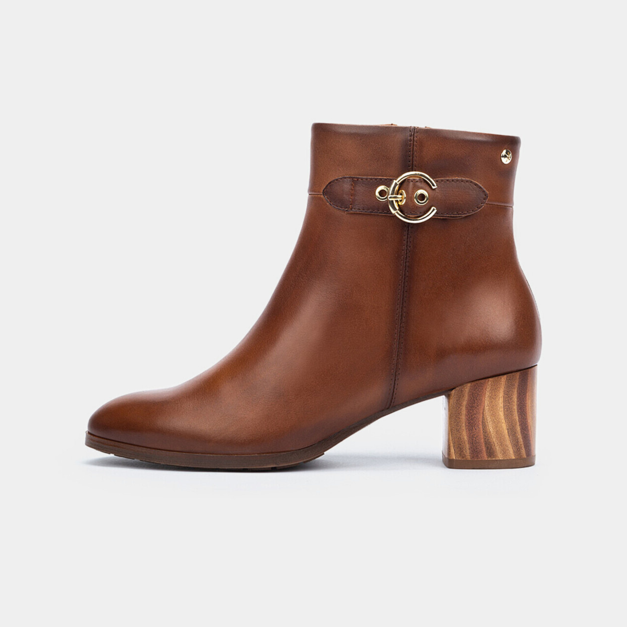 Refined and effortlessly wearable, the W1Z-8588 ankle boots combine classic elegance with everyday comfort. Crafted in smooth cuero leather, this timeless silhouette is elevated with subtle gold-tone hardware at the ankle, adding a polished finish. A comfortable block heel and easy inner zip make these boots ideal for all-day wear, from work to evening.