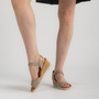 The Winifred Muschel Leather Sandals by Gabor bring together timeless elegance and everyday comfort. Designed with a subtle metallic finish, these wedges feature a supportive cushioned footbed and a woven-effect wedge heel for a refined summer look. The adjustable ankle strap ensures a secure fit, while the lightweight sole provides flexibility and grip for all-day wear.